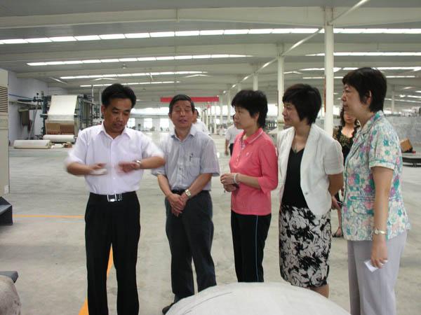 7月28日下午3:00,中國紡織協(xié)會(huì )副會(huì )長(cháng)、中國家紡行業(yè)協(xié)會(huì )會(huì )長(cháng)楊東輝先生、中國棉紡織行業(yè)協(xié)會(huì )副會(huì )長(cháng)兼秘書(shū)長(cháng)朱北娜在濱州市副市長(cháng)孫承志的陪同下蒞臨公司檢查指導工作。