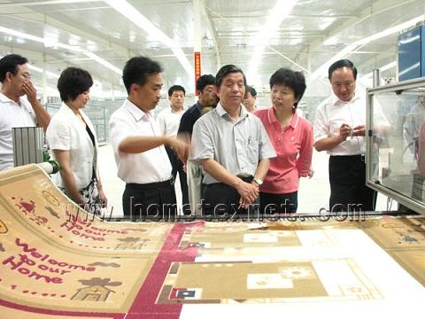 下午3點(diǎn),楊會(huì )長(cháng)在孫市長(cháng)的陪同下先后參觀(guān)了公司的化纖車(chē)間、多功能展廳以及地毯車(chē)間,在化纖車(chē)間,公司董事長(cháng)韓洪亮向楊會(huì )長(cháng)詳細介紹了化纖車(chē)間的情況。韓總說(shuō),化纖車(chē)間是公司為延長(cháng)產(chǎn)業(yè)鏈、保證原材料長(cháng)絲而新上的車(chē)間,化纖車(chē)間無(wú)論是設備科技還是年產(chǎn)量在國內都位居前列,目前已經(jīng)試車(chē)成功,即將投入量產(chǎn)。聽(tīng)到這些,楊會(huì )長(cháng)高興的說(shuō),機織地毯在我國方興未艾、正處于一個(gè)快速發(fā)展的黃金階段,誰(shuí)抓住機遇、誰(shuí)就能做大做強,東方地毯能夠依靠科技創(chuàng )新、走集團化的發(fā)展戰略,為中國地毯行業(yè)模式的發(fā)展創(chuàng )造了范例。